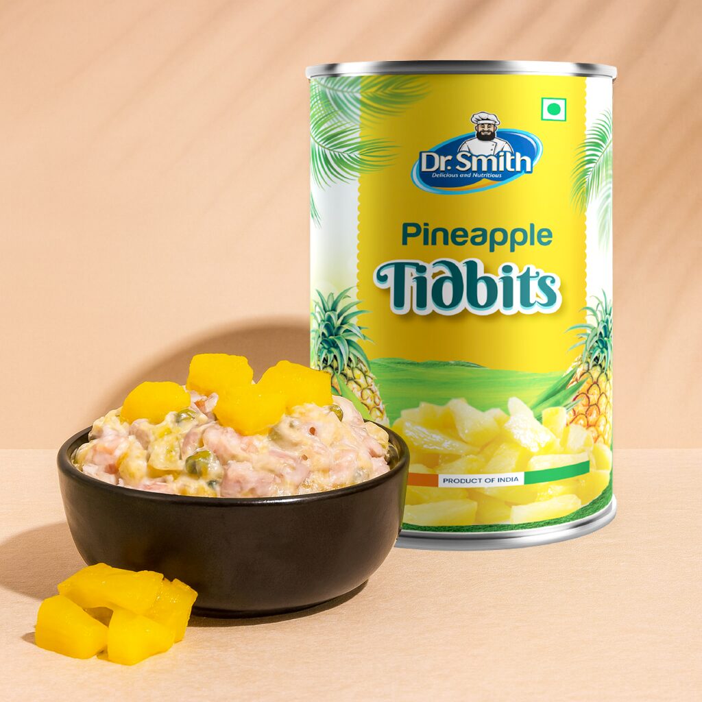 Experience the juiciest pineapple tidbits in India with Dr. Smith. Bursting with tropical sweetness and vibrant flavor, these perfectly cut pineapple pieces are gently processed to lock in their natural freshness and aroma. Ideal for Indian kitchens, HoReCa, bakeries, and international cuisines, they add a refreshing twist to desserts, mocktails, salads, pizzas, biryanis, and grilled dishes. Their bright color, soft bite, and juicy texture make every recipe pop with flavor.
