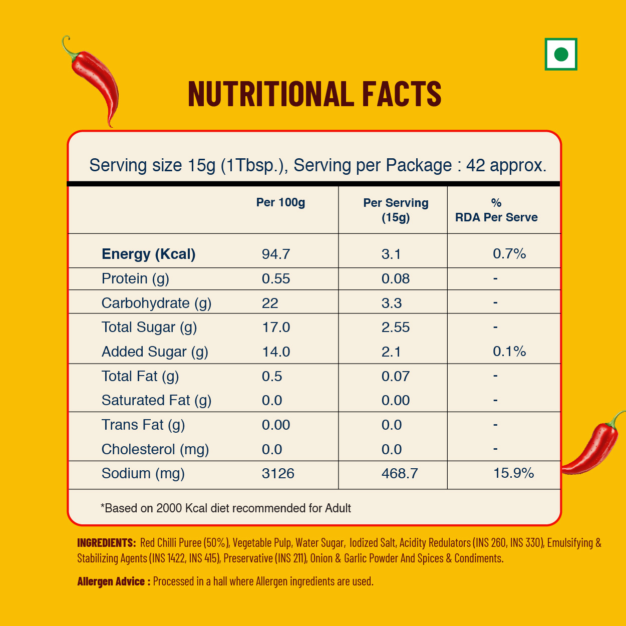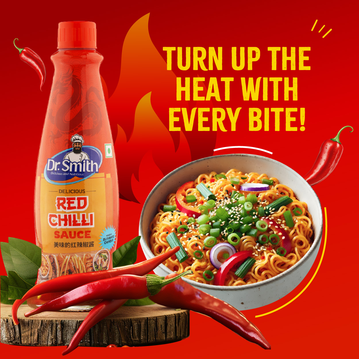 Dr. Smith Red Chilli Sauce is crafted from handpicked red chillies, fresh spices, and a signature blend that delivers perfect heat and vibrant taste. Its balanced spicy-tangy profile makes it a versatile kitchen essential for noodles, momos, samosas, pakoras, fried rice, sandwiches, rolls, and more. Thick, smooth, and richly coloured—this is your go-to sauce for everyday use and special recipes.